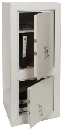 Изделия этой серии имеют металлическую стенку толщиной 3 мм, оснащены сейфовыми ригельными замками CAWI (Германия) с высокой степенью секретности. Диаметр ригелей составляет 24 мм.