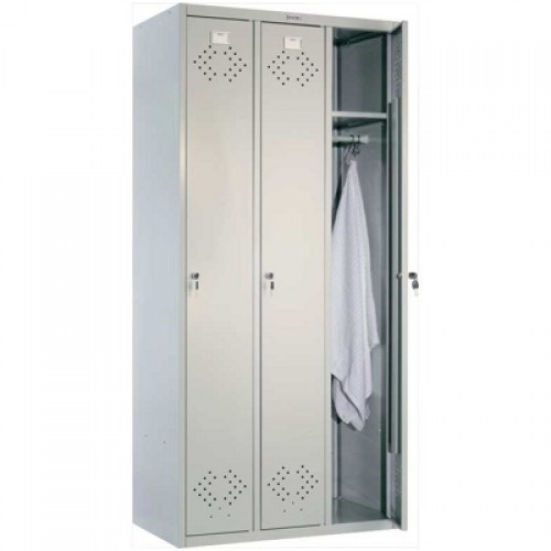 Гардеробный шкаф LS-31 (3 секции) предназначен для хранения сменной одежды в спортивных, производственных и прочих помещениях. Комплект поставки включает полки, крючки и перекладины.