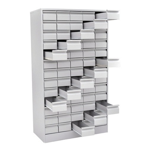 Шкаф предназначен для хранения карточек, формуляров. Комплектация - 65 выдвижных ящиков.