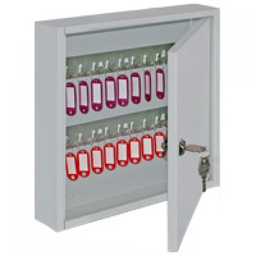 Корпус изделия выполнен из листовой стали толщиной 1,2 мм и покрыт полимерной краской светло-серого цвета. Дверца ключницы оборудована скрытыми петлями и надежным ключевым замком Euro Locks.