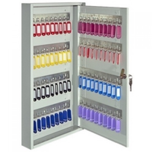 Шкаф для ключей ШК-80 предназначен для хранения ключей (80 мест) в охраняемых помещениях жилых зданий, производственных предприятий и прочих местах. Ключница комплектуется брелоками с кольцами.