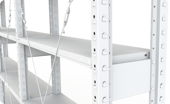 Стойка является основным элементом при сборке универсального стеллажа. Для устойчивости стеллажа стойки снабжаются регулируемыми опорами или подпятниками.