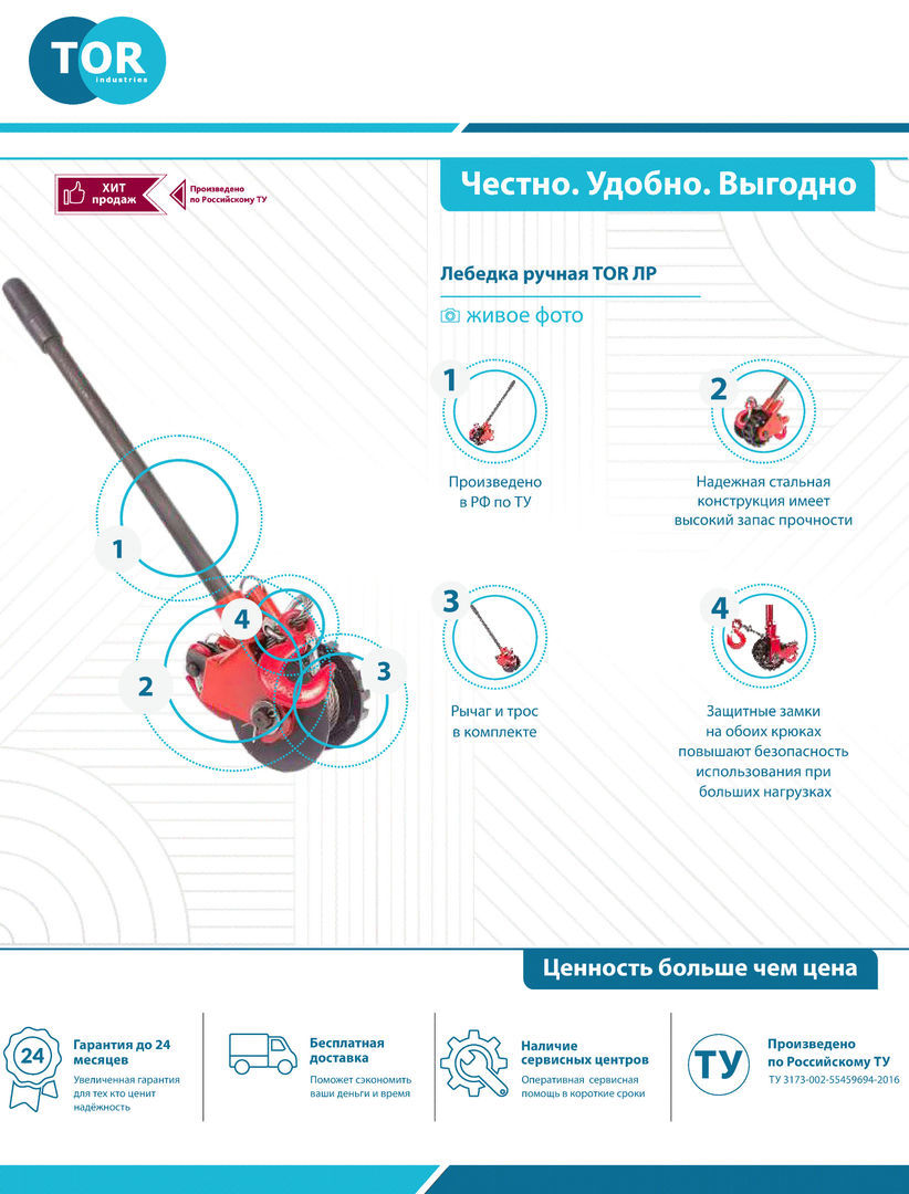 Лебедка ручная ЛР-0.63 предназначена для перемещения грузов при выполнении монтажных, демонтажных, ремонтных и других работ, как в производстве, так и в быту. Надежна и простота в эксплуатации. Длина рукоятки регулируется. Возможна эксплуатация в любом пространственном положении. Имеет небольшие габариты и массу.